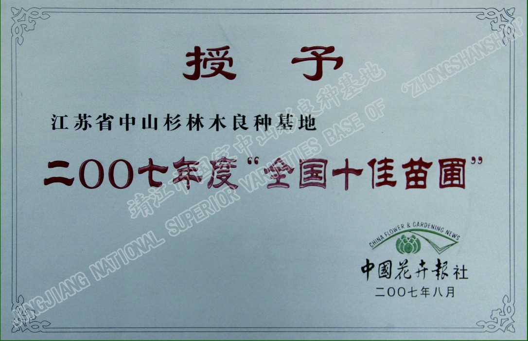 靖江市中山杉林木良種有限公司單位現有職工120人,其中中高級技術人員26人,初級技術人員45人,高級技工45多人,備有多功能灑水車、高空作業(yè)車、挖掘機、草坪噴播機等齊全的園林施工機械,年承接綠化工程100萬平方米以上。公司自成立以來,參與了眾多省內外綠化重點工程的建設,先后完成江陰長江公路大橋、潤揚大橋、南京三橋、蘇州吳中大道、揚州西北線繞城、無錫沿江高速、無錫342省道、滬寧高速、泰高路、寧通高......